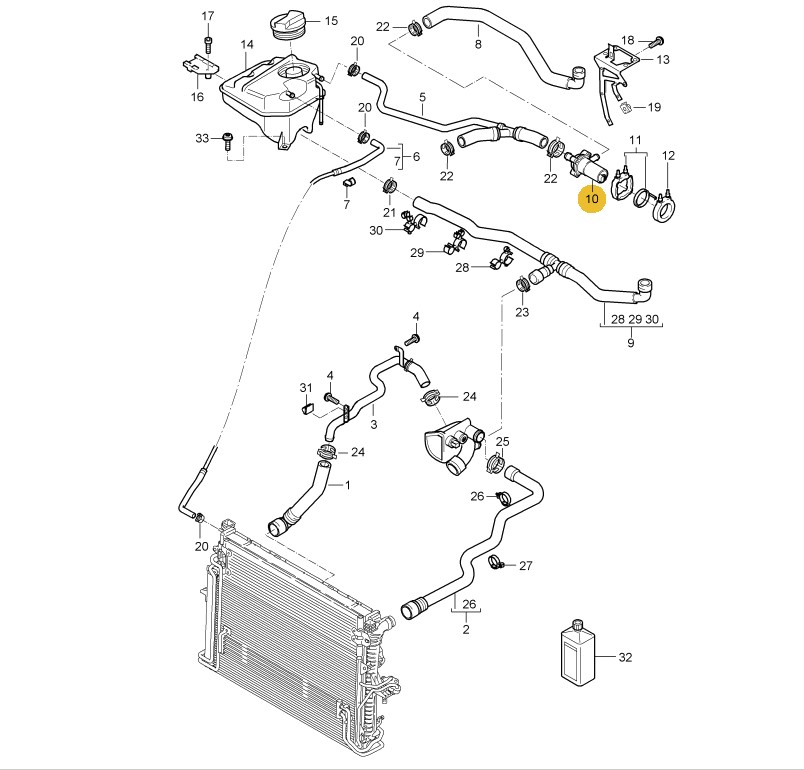 Подскажите, где на кайене с мотором 3,2л. стоит дополнительная помпа (насос подкачки охлаждающей жидкости)?