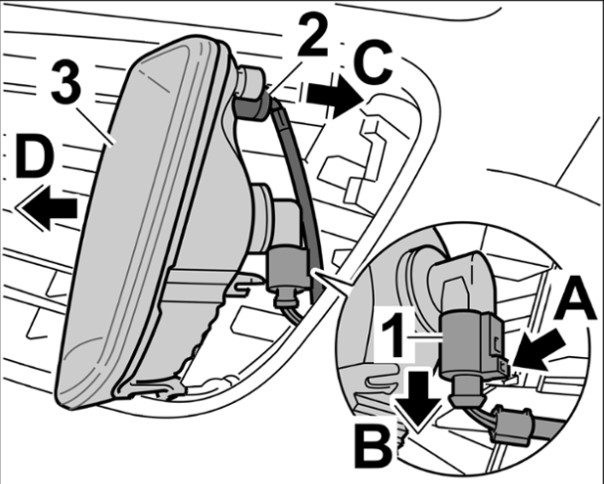 2 Отключить разъемы от переднего указателя поворота.