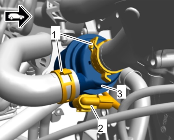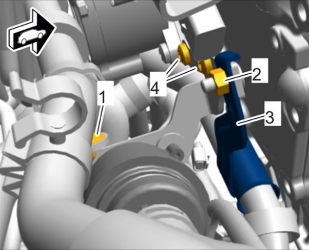 2.2 Вывернуть крепежные винты, -3- снять держатель жгута проводов двигателя -4-.
