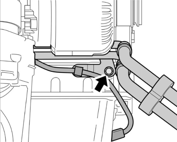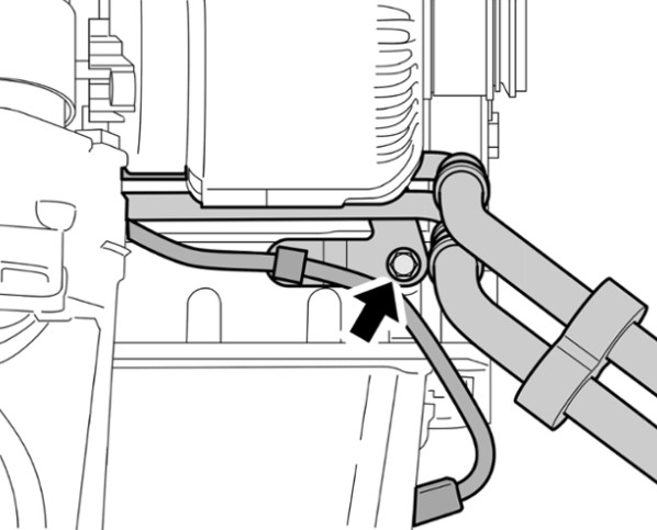 1 Вывернуть крепежный винт -стрелка- трубопровода ATF на двигателе.