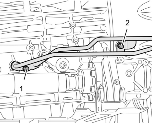 2 Вывернуть крепежный винт -2- трубопровода ATF на колоколе коробки передач.