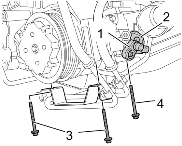 7.4 Выкрутить винт крепления -4- и поддержать рукой компрессор кондиционера.