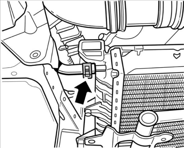 2 Снять вентиляционный шланг сверху справа на радиаторе.