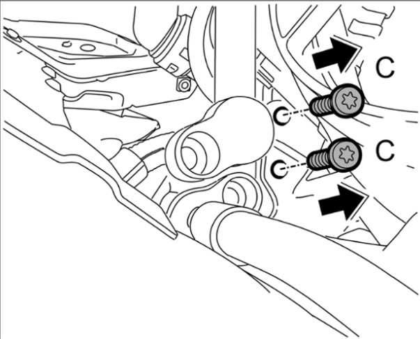 3 Выкрутить оба крепежных винта -C- конденсатора на радиаторе системы охлаждения (слева по направлению движения).