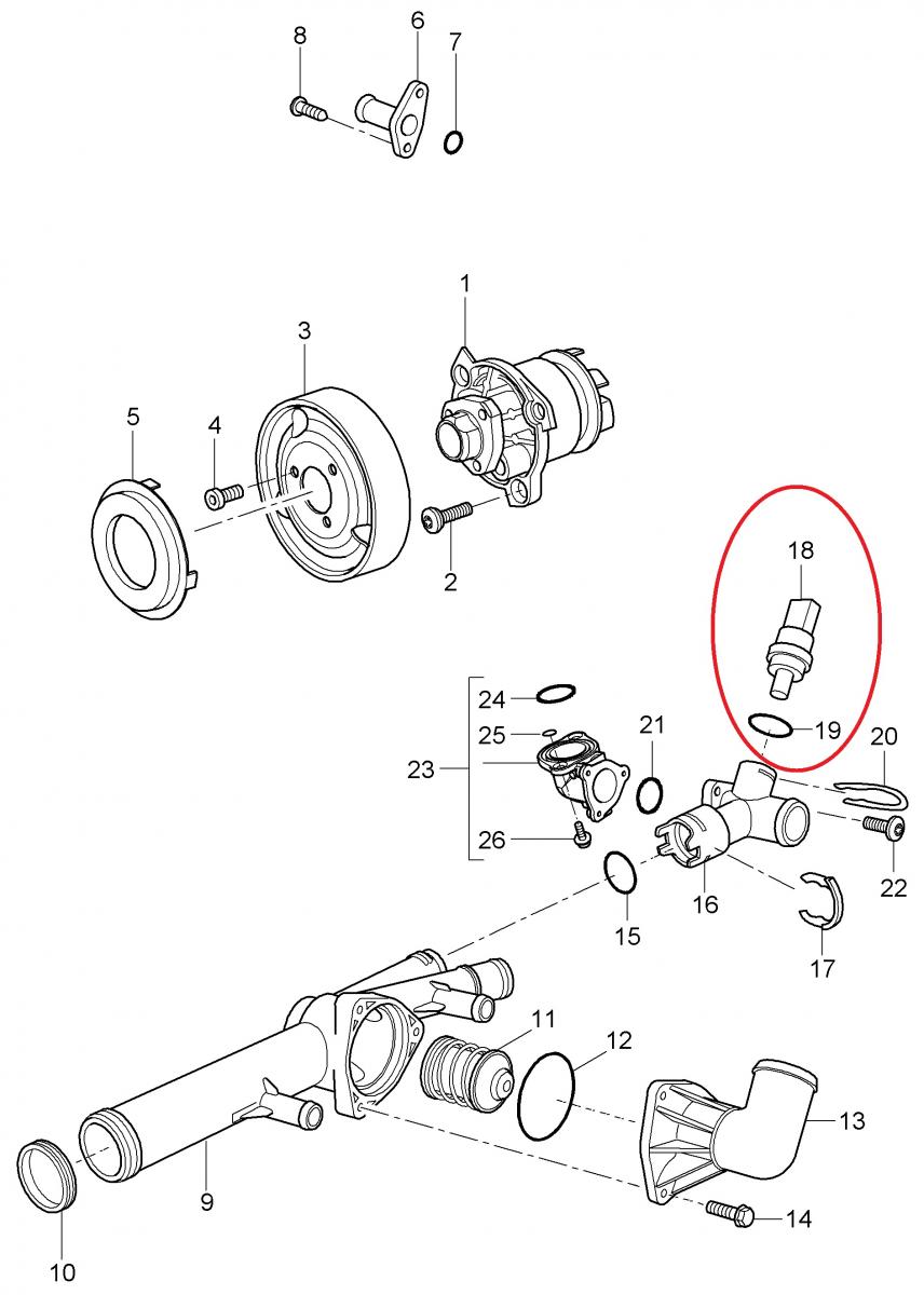 Нашел на схеме еще один датчик температуры, в районе термостата, информация на приборную панель и при диагностике выводится с него?