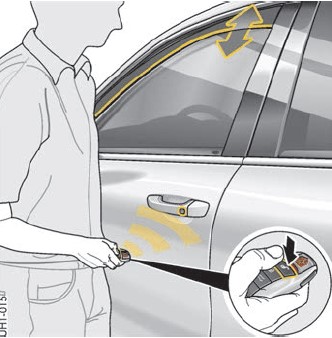 Нажмите и удерживайте кнопку открывания или закрывания автомобиля на ключе до тех пор, пока стекла не займут нужное положение.