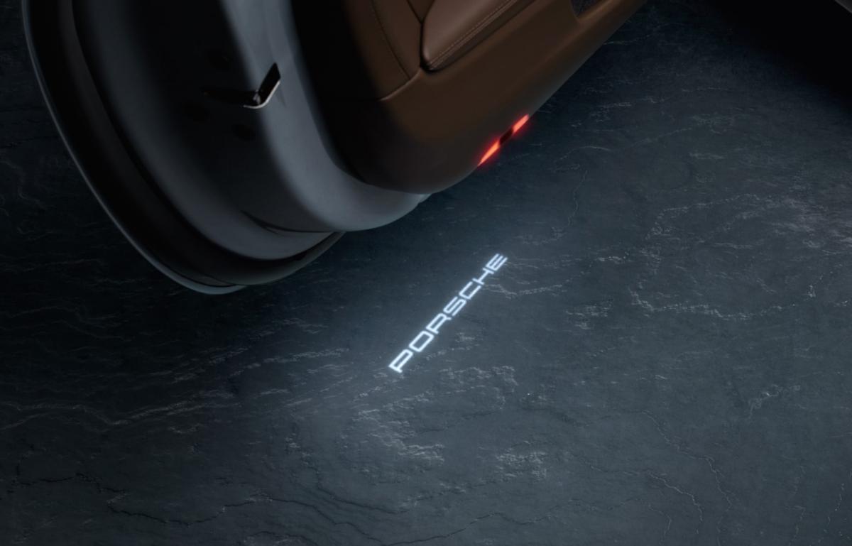 Набор из 2 шт. для установки на боковых дверях. Проекция световой надписи «PORSCHE» в белом цвете на стороне водителя и на стороне переднего пассажира.