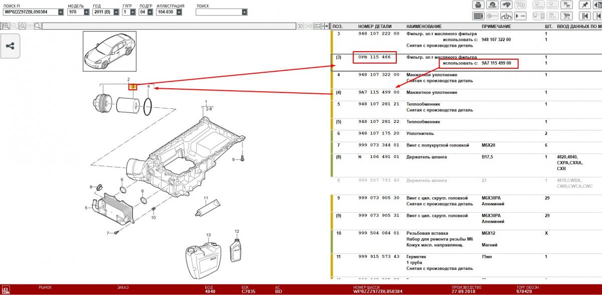 из-за применения неподходящего масла. Осуществлять проверку только с использованием масла, рекомендованного Porsche.