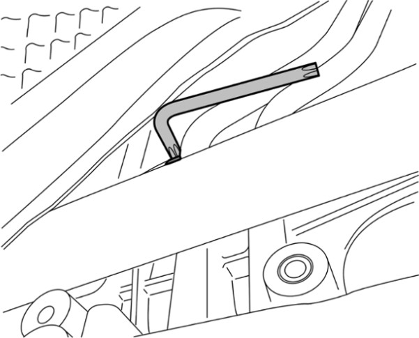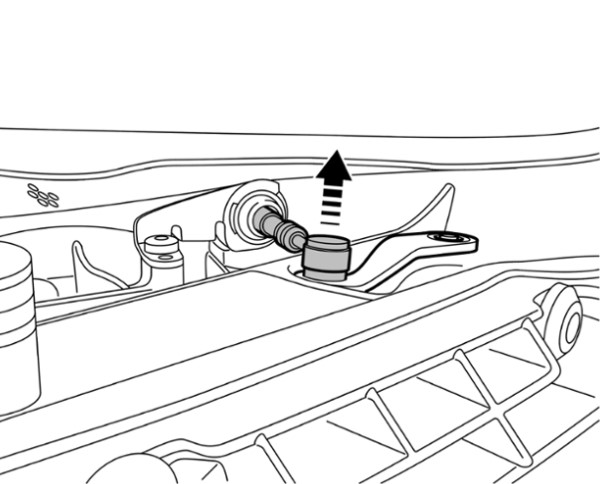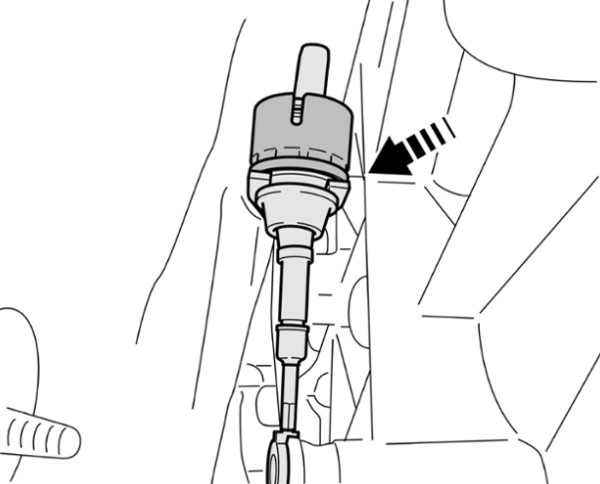 6 Задвинуть крепежный элемент троса блокировки в контропору на коробке передач в направлении движения.