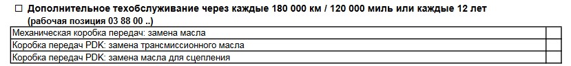 Дополнительное техобслуживание через каждые 180 000 км / 120 000 миль или каждые 12 лет
