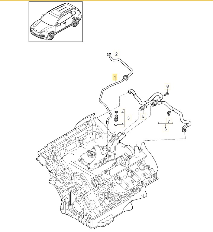 92A производство 2011>>2018 (K;L) Схема замены трубок картерных газов на Cayenne S Hybrid Tip. (92AAM1)