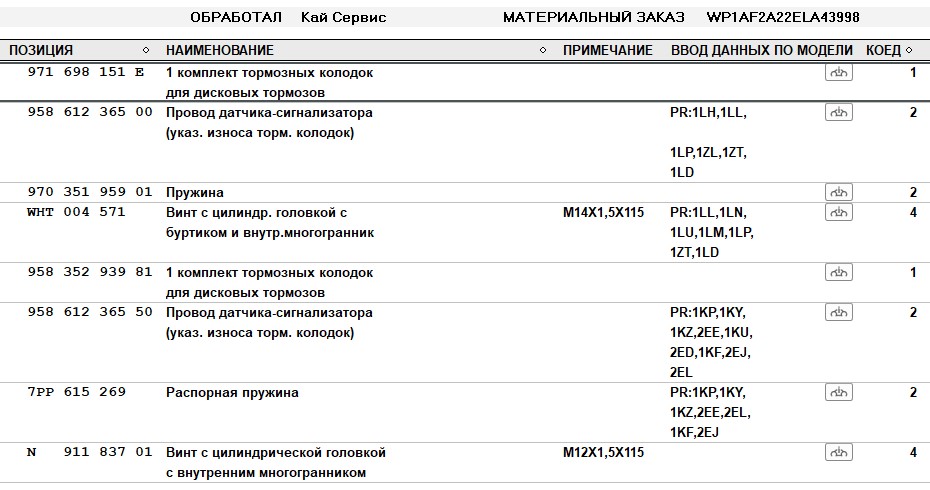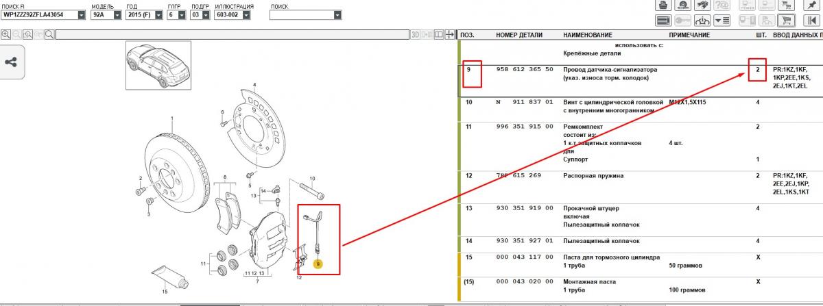 Добрый день Владимир. подскажите пожалуйста каталожные номера для замены тормозных колодок ,датчиков и пружин передних и задних для каена. VIN WP1ZZZ92ZFLA43054