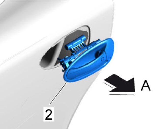 2 Снять основание ручки двери -1- вовнутрь -A-.