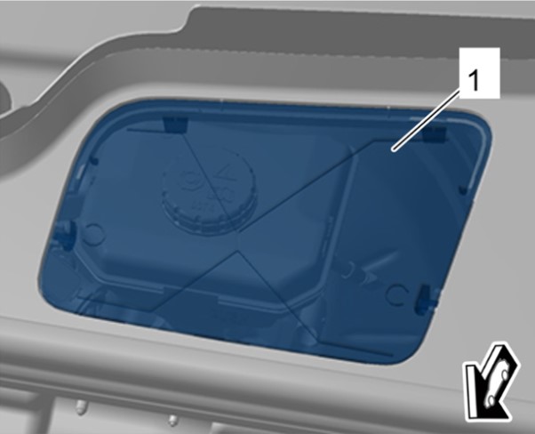 1 Открыть сервисную крышку -1- в накладке водоотводящего короба.