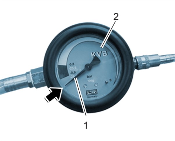 22 Для обеспечения вытекания охлаждающей жидкости во время процесса прокачки с помощью тестера PIWIS вакуумметр остается в данном рабочем состоянии.