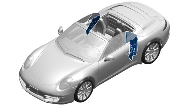 3 Наклон бокового стекла можно отрегулировать на верхних креплениях посредством распорных пластин (991.543.561.0X).