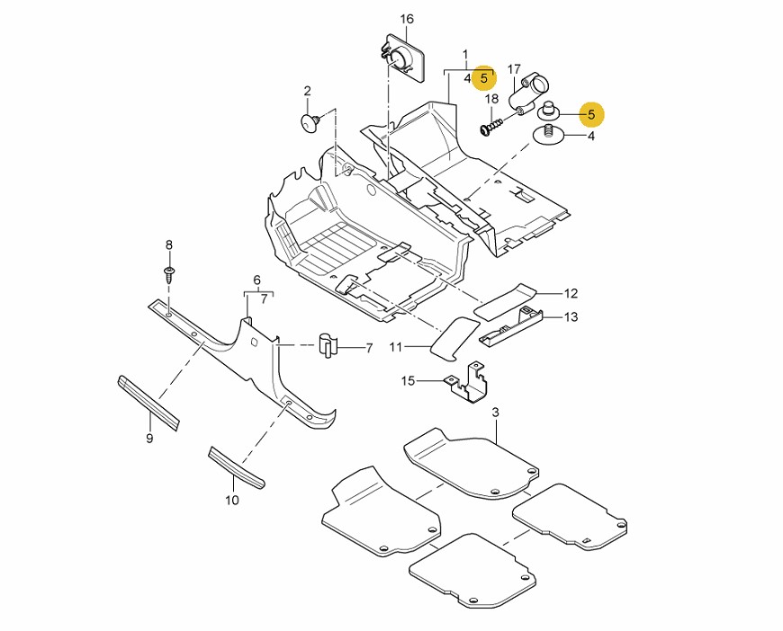 9PA производство 2003>>2006 (L) Крепежи штатных ковриков в обшивке пола Cayenne S Tiptronic (9PAAE1)