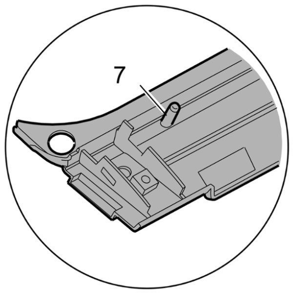 Установить облицовку -1- с ориентирующей втулкой -6- на ориентирующие штифты -7-.