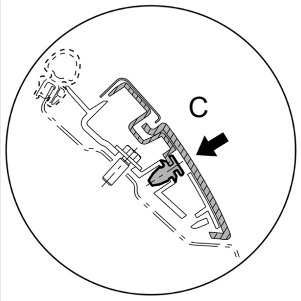 Прижать облицовку в ее держатель, защелкнуть крепежный зажим -C-.