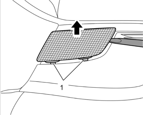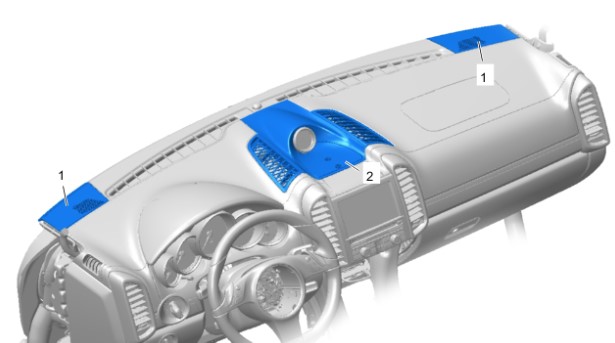 1	Разблокировать облицовку динамика -1- из передней панели в задней области -2--A- , затем разблокировать другие фиксаторы.