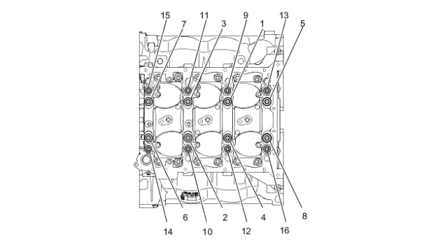 1 по 16	Последовательность затяжки винтов M11 и M10 => учитывать разные моменты затяжки!