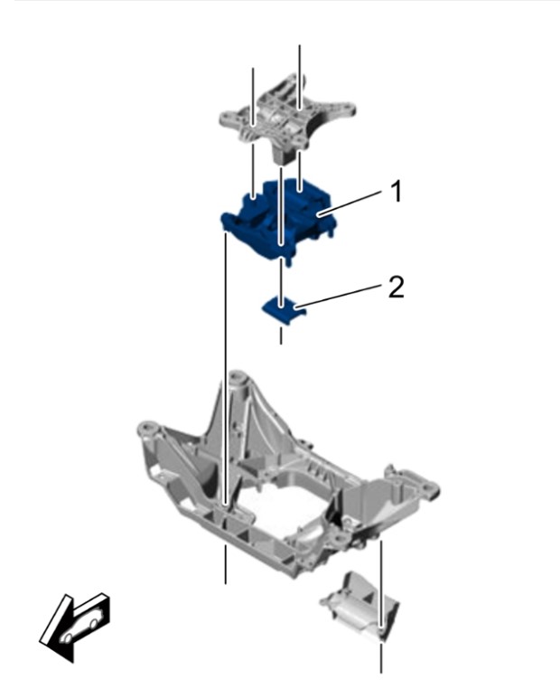 Заменить опору коробки передач (-1-) и упор опоры коробки передач (-2-)