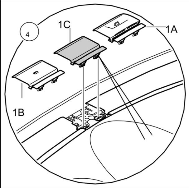 8 Установить и зафиксировать центральную накладку -1A, 1B или 1C- .