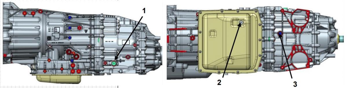 Настройка уровня масла в коробке передач PDK2 осуществляется с помощью трубки маслопровода, вкрученной в коробку передач снизу и связанной с резьбовой пробкой.