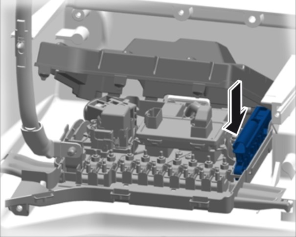 6 Разблокировать три зажима -1- на основном блоке предохранителей -2- и открыть основной блок предохранителей.