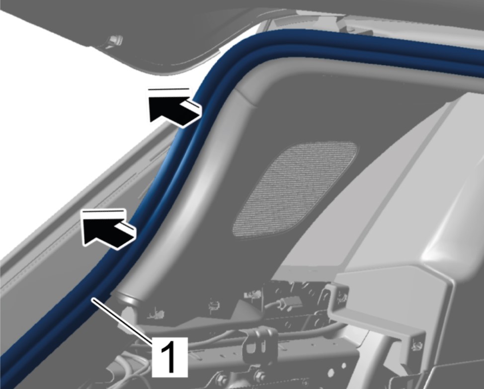 1 Ввести облицовку стойки D, следя за тем, чтобы направляющие выступы заняли правильное положение.
