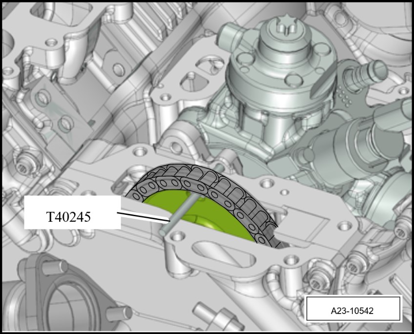 3 Зафиксировать звездочку насоса высокого давления с помощью T40245 - стопорного штифта .