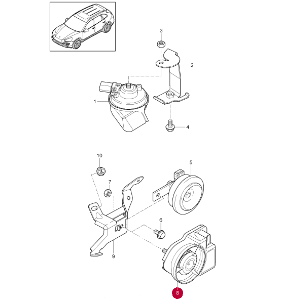 Проконсультируйте пожалуйста,где расположена сирен штатной сигнализации PORSCHE Cayenne(As of 2011)