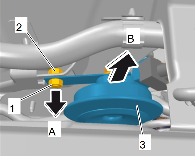 3. Извлечь сирену охранной сигнализации -3- вверх -стрелка B- .