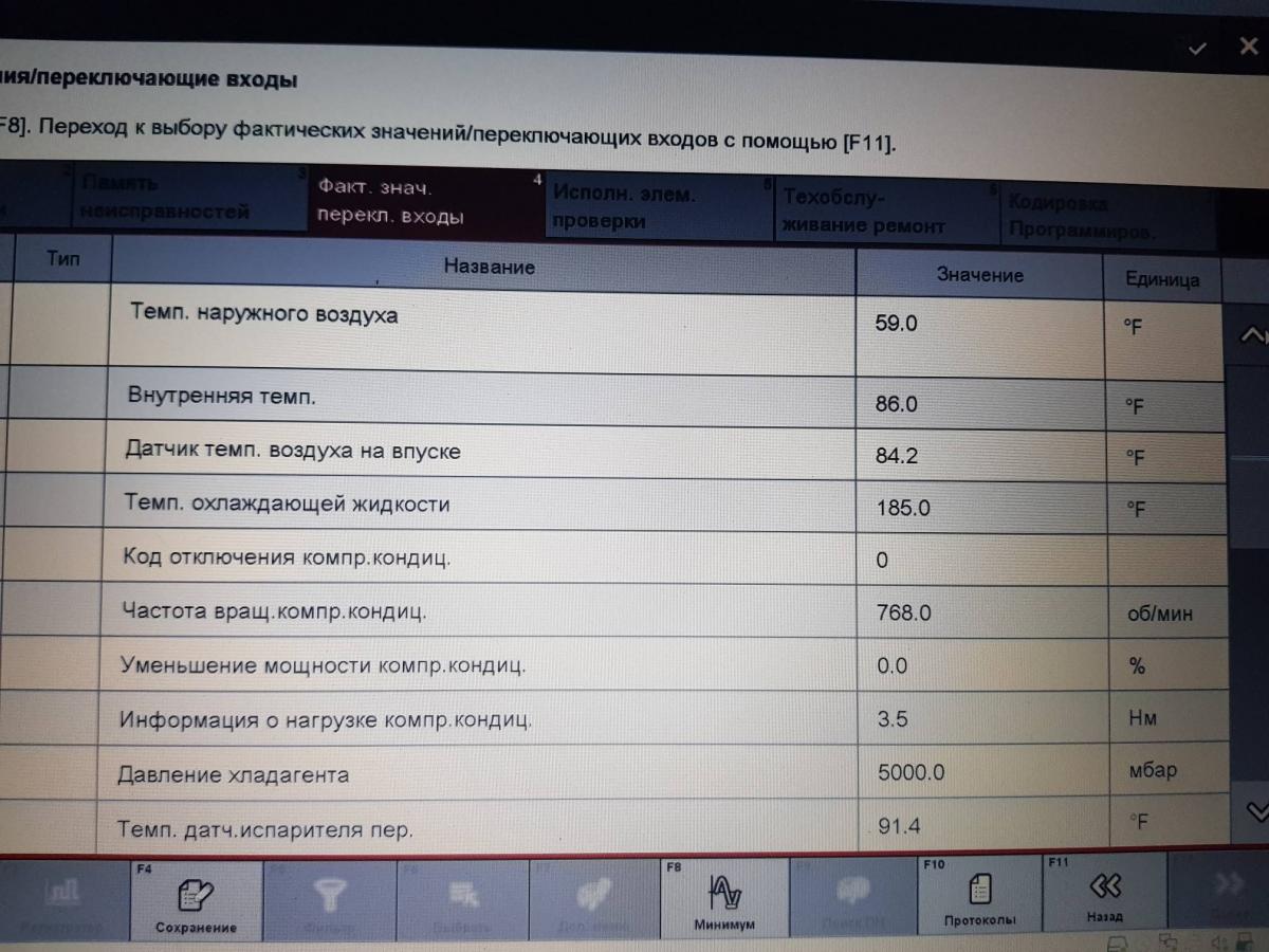 Добрый день. Спасибо за рекомендации. Ошибки ушли после замены блока управления климатом. Но холодом так и не дует поче му то. Калибровка прошла успешно. Клапан компрессора клацает при подаче питания на него. Что может ещё быть? Данные фактических величин прлогаю.