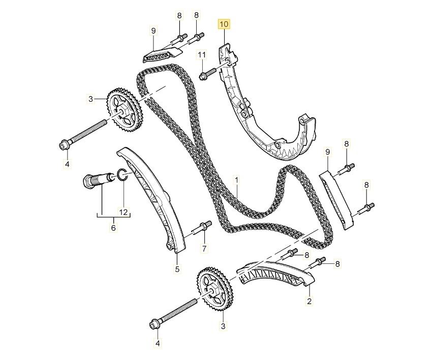 При монтаже следует прикрутить болты звездочек от руки, а затем ослабить на 1-2 оборота. Этот зазор необходим для того, чтобы распредвалы еще могли проворачиваться.