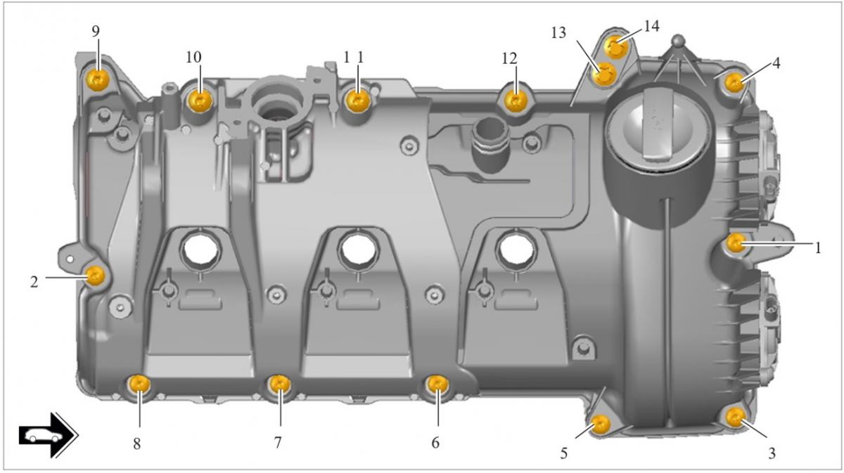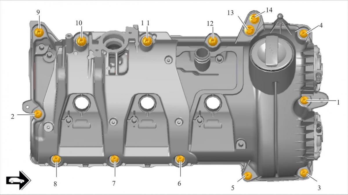 Предписание по затяжке крышки головки блока цилиндров (литье под давлением)