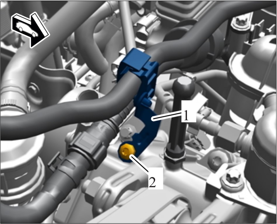 2 Крепежный винт держателя к крышке головки блока цилиндров 1–3 Момент затяжки 4,5 Nm