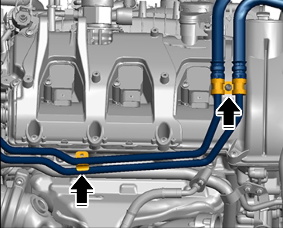 6 Отсоединить 2 держателя трубопроводов ATF от крышки головки блока цилиндров.