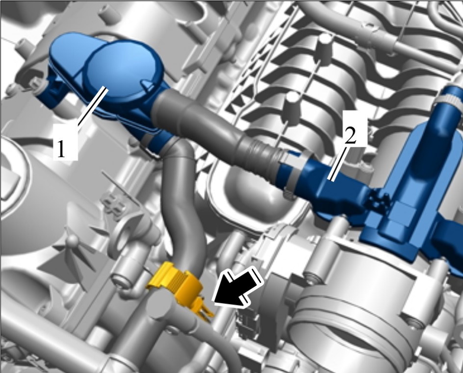 8.2 Отсоединить канал прокачки от блока дроссельной заслонки -2-.