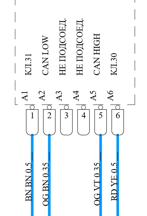 Часы вид сзади. Нумерация контактов такая? Если да, то всё правильно, т.е. пин1 - кл. 31 ("-"), пин2 - "Can low", пин5 - "Can high", пин6 - кл.30 ("+")