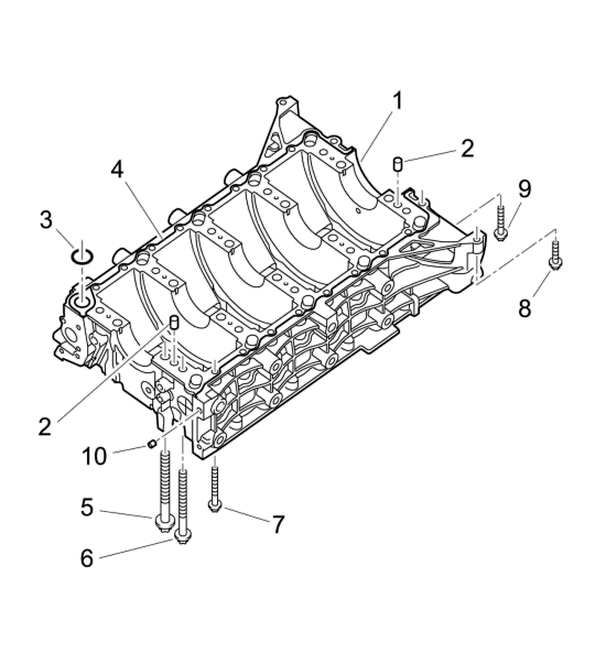 2 - Цилиндрический штифт; служит для центрирования нижней и верхней частей блока цилиндров