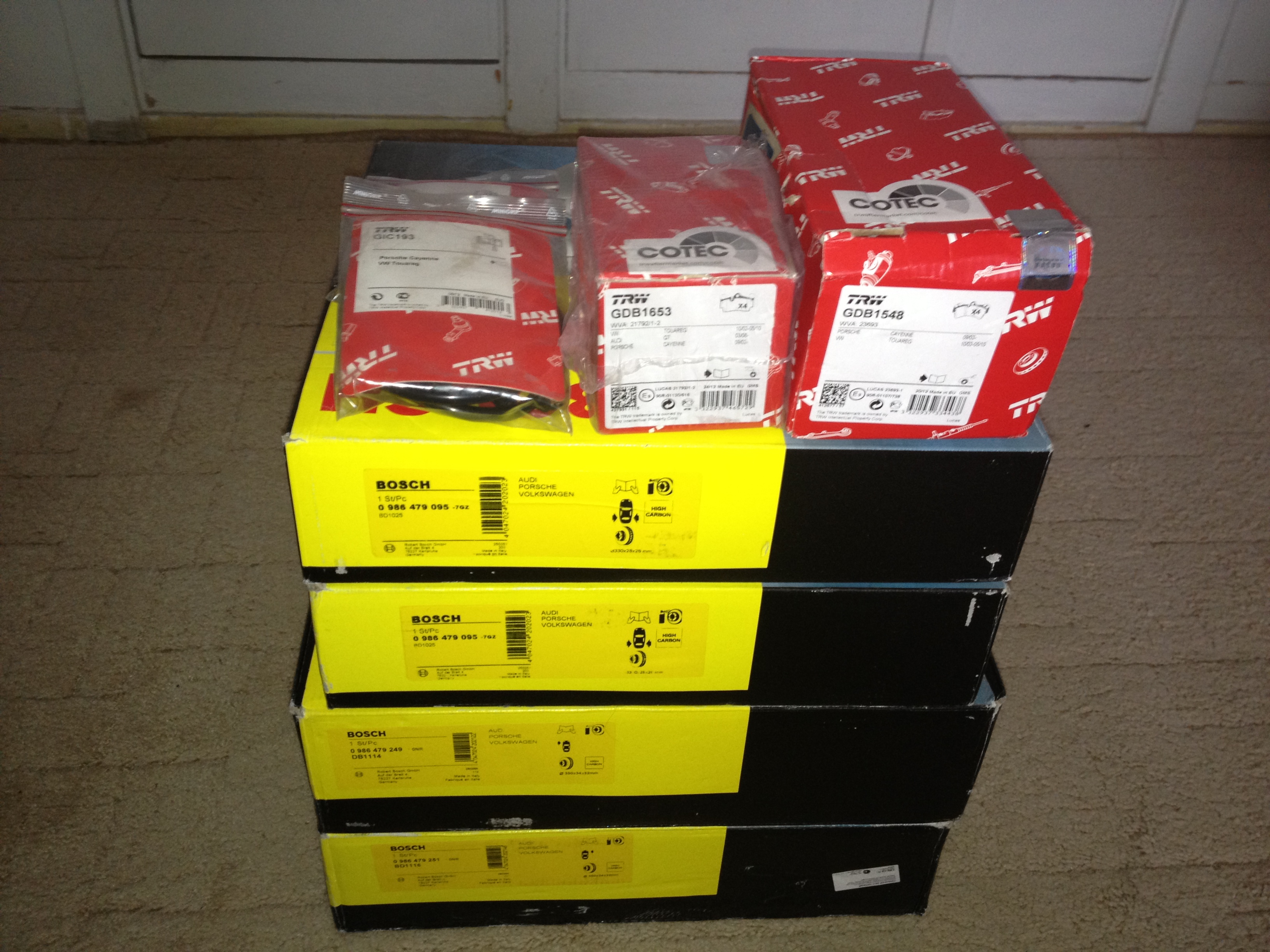 Продам комплект тормозных дисков Bosch перед 350,зад 330, и колодок с датчиками TRW на Порше Кайен, цена за все 13500, доставка
