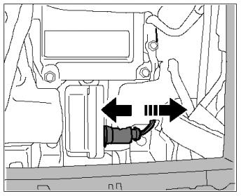 Поддеть фиксатор разъема, затем отсоединить разъем!