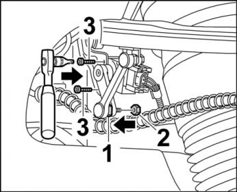 Датчик уровня кузова привинчен к кузову и верхнему поперечному рычагу подвески.