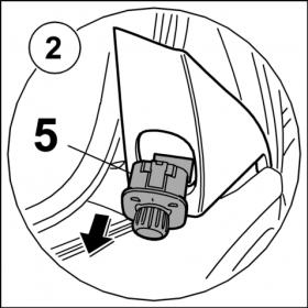 14. Вставить разъем -5- спереди в облицовку треугольника зеркала -4- и заклипсовать.