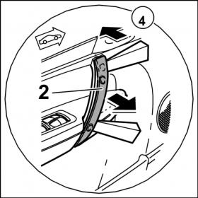 5. Накладку -2- ручки закрывания двери осторожно поддеть пластмассовым клином и снять.