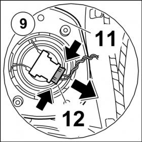 10. Разблокировать и отсоединить разъем динамика двери -12- на динамике -11- .