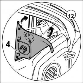 12. Палец -14- тяги привода повернуть на 90° вперед и снять в направлении вверх.