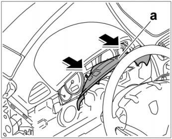 4. Для отщелкивания нажать на блок панели приборов (накладку комбинации приборов) по бокам -стрелки A- .