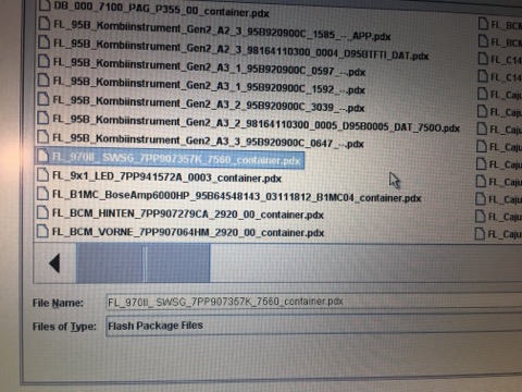 Блок центральной фары восстановил через программирование файлом pdx, о котором шла речь выше (только у меня сомнение по поводу файла поскольку он с индексом 970 - вроде как для панамеры), но после программинга он не хочет кодироваться, отказ. Добавил опцию 8EX LED ECE в комплектацию авто, сохранил, закодировал gateway с этой опцией успешно. Дальше процедура ввода фар в эксплуатацию : снова программируется AFS, блоки в фарах - доходит полоска до 3х процентов и все , на этом стали (блоки в фарах от бокстера с LED фарами).